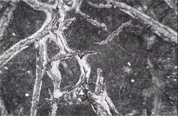 初步觀察腐蝕后的試樣表面不難發(fā)現(xiàn)每塊試樣都有一到兩塊顏色較深的斑塊,而斑塊往往垂直于裂紋延伸方向平行于制動(dòng)摩擦力方向,而且往往處于裂紋的中間位置。由此不難猜想深色斑塊是因?yàn)橹苿?dòng)鼓工作時(shí)產(chǎn)熱不均而產(chǎn)生的局部高溫急速冷卻形成的相變組織,而裂紋首先從相變中心位置產(chǎn)生并垂直于制動(dòng)摩擦力方向兩邊延伸,延伸至未相變的組織處結(jié)束。為證明以上猜想,邢臺(tái)向遠(yuǎn)汽配有限公司對(duì)腐蝕后的樣品依次在400x的金相顯微鏡下觀察并拍了金相照片如下: